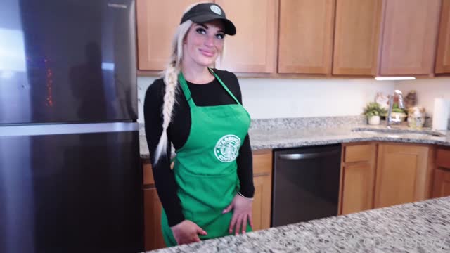 Busty Starbucks Barista Squirts On BBC And Swallows Cum
